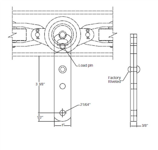 刚性直边吊坠与刚性 U 形吊坠类似,只是侧面是直的。其间距可以是 6 英寸的倍数。它直接连接到传送链垂直链节上的负载销上,表面镀锌。