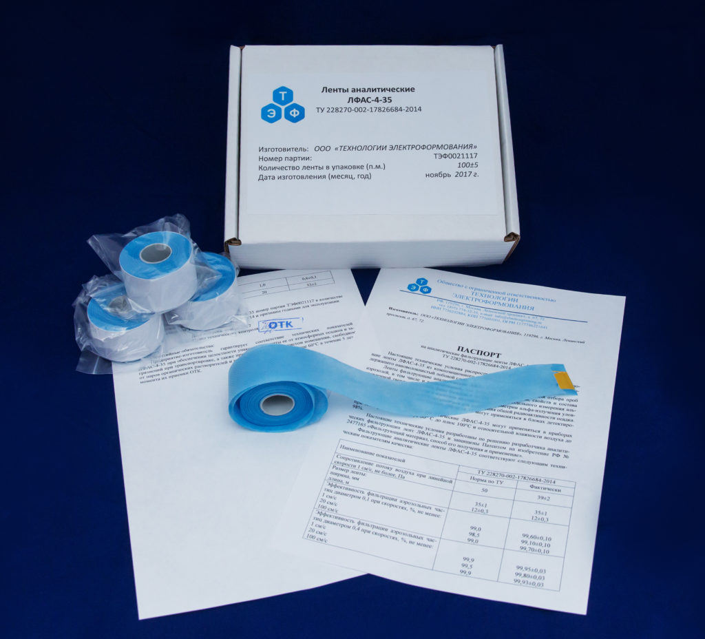 分析滤带 LFAS-4-35 是 FLSW Fluropore Millipore 滤带的国产类似物,可用于 UDAS-201 型检测装置。 LFAS-4-35 胶带设计用于气溶胶采样,包括放射性气溶胶,用于测量设备中捕获的固相(沉积物)的数量、性质和成分,以使用 α 辐射光谱法单独测量 α 放射性元素和同位素捕获的沉积物,也可用于测量沉积物的总放射性。