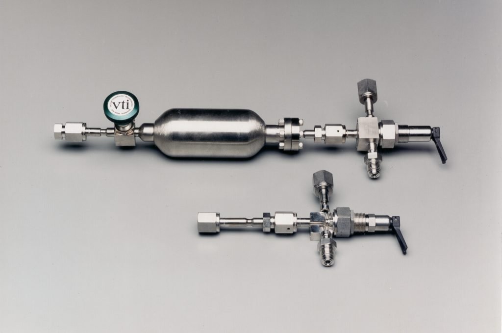 这些毛细管式校准漏孔采用 VTI 专有的正向截止 (PSO) 阀,可实现即时开关,且几乎无死体积。这可防止阀门打开时气体从容器中喷涌而出。该阀门的死体积仅为 0.0001 cc,远低于其他阀门的 1 cc 或更高。PSO 阀门漏孔还能大限度地降低气体消耗率,即使在高流速下也能延长使用寿命。其漏率控制元件是一根适用于所有气体的波纹不锈钢毛细管。