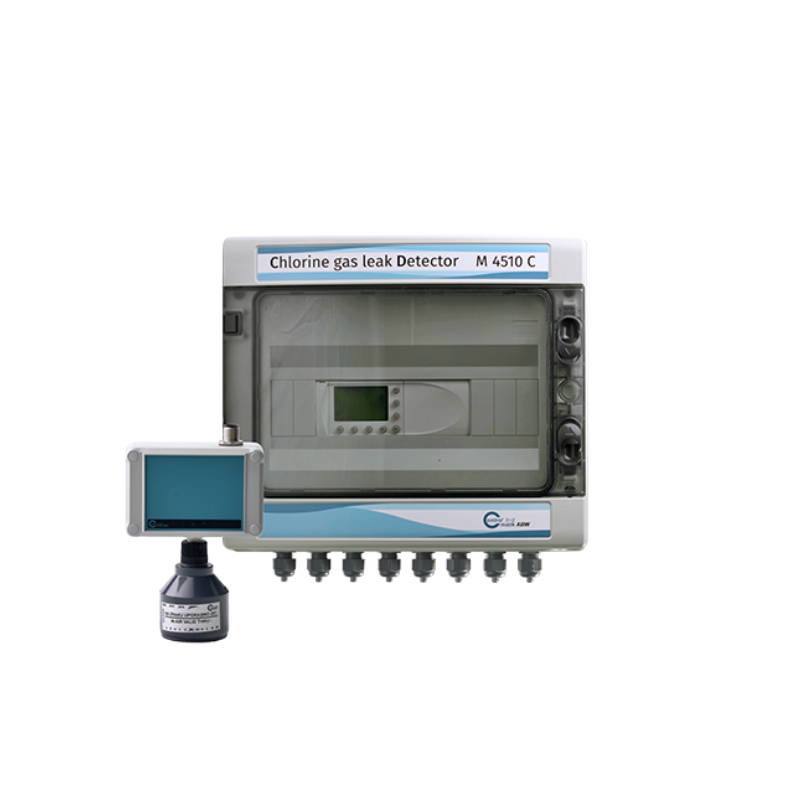 检测单元安装于IP65防护等级外壳内,配备4-20mA输出接口,连接至信号评估单元。可设置两组可调报警,当发生氯气泄漏时可启动以下装置: